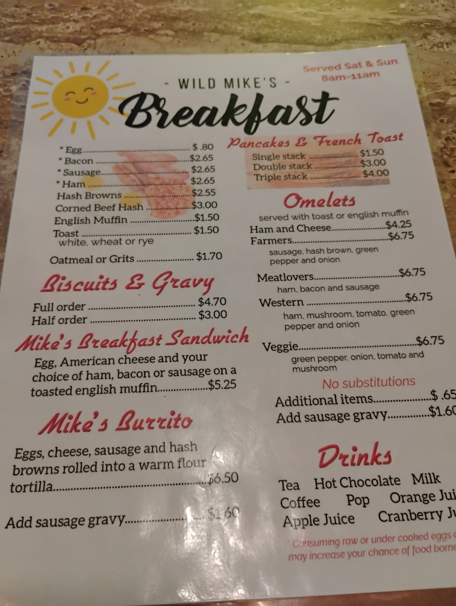 Welcome to Wild Mike's, a lively hub nestled in Battle Creek, MI. This dining destination invites you to explore a diverse menu that boasts an array of omelets, from the savory Ham and Cheese to the robust Meatlovers and Western options, priced affordably from $4.25 to $6.75. Complement your meal with scrumptious sides like Hash Browns and Corned Beef Hash, and indulge in some refreshing draft beers including Miller Lite and Angry Orchard Hard Cider.